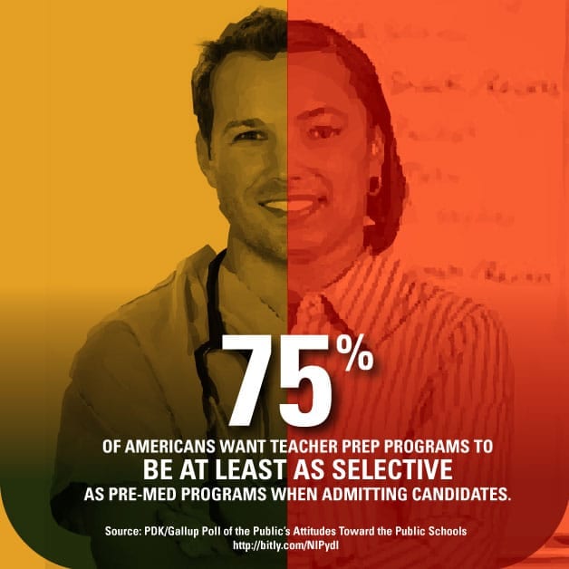 Read more75% of Americans want teacher prep programs to be at least as selective as pre-med programs when admitting candidates.