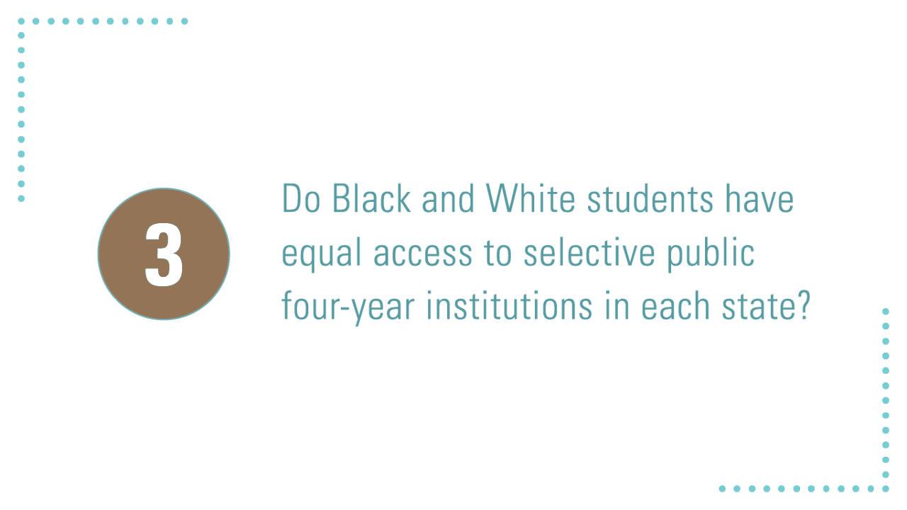 - In three out of four states, the colleges with the most stringent admissions standards enroll White students at a higher rate than they enroll Black students.
