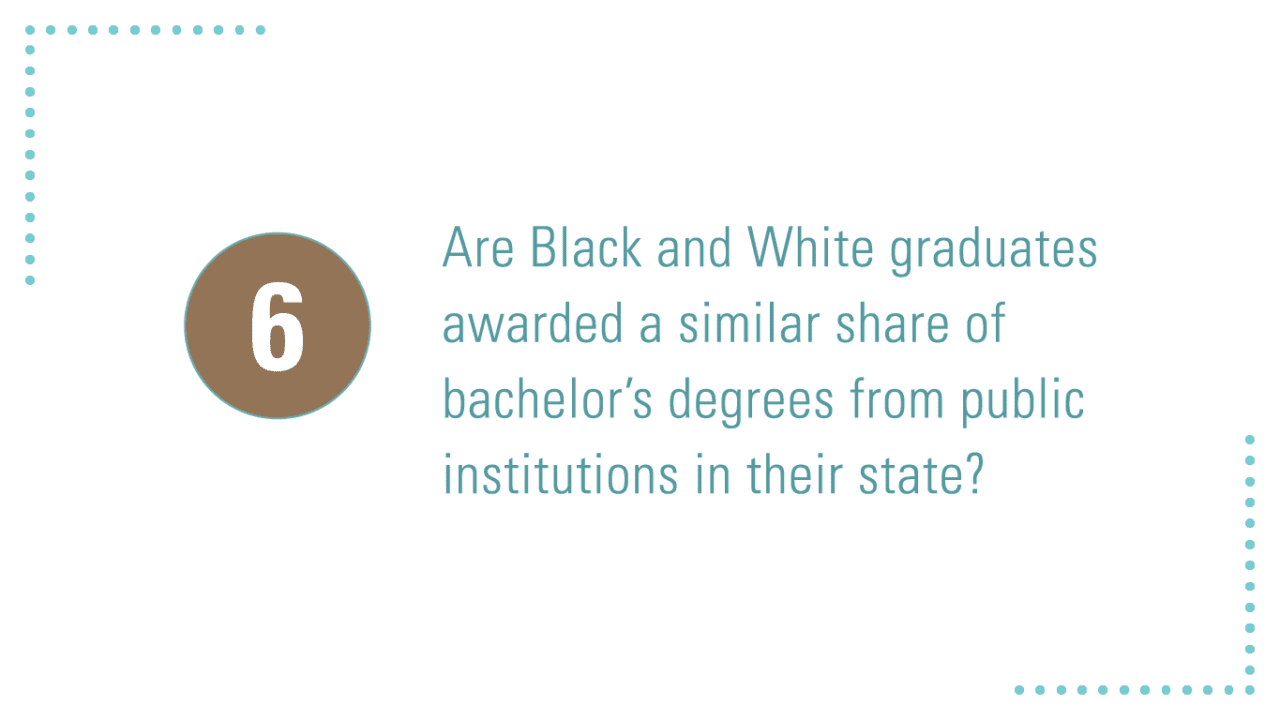 To do this, we posed six questions related to Black student representation among undergraduates and degree earners. The answers clearly illustrate that public institutions in too many states are falling short of their obligation to enroll and graduate Black students.