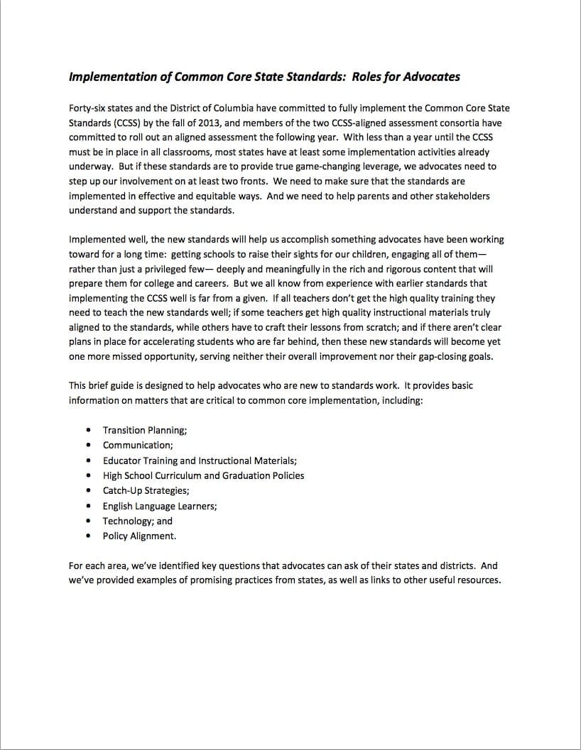 Implementation of Common Core Standards: Role for Advocates